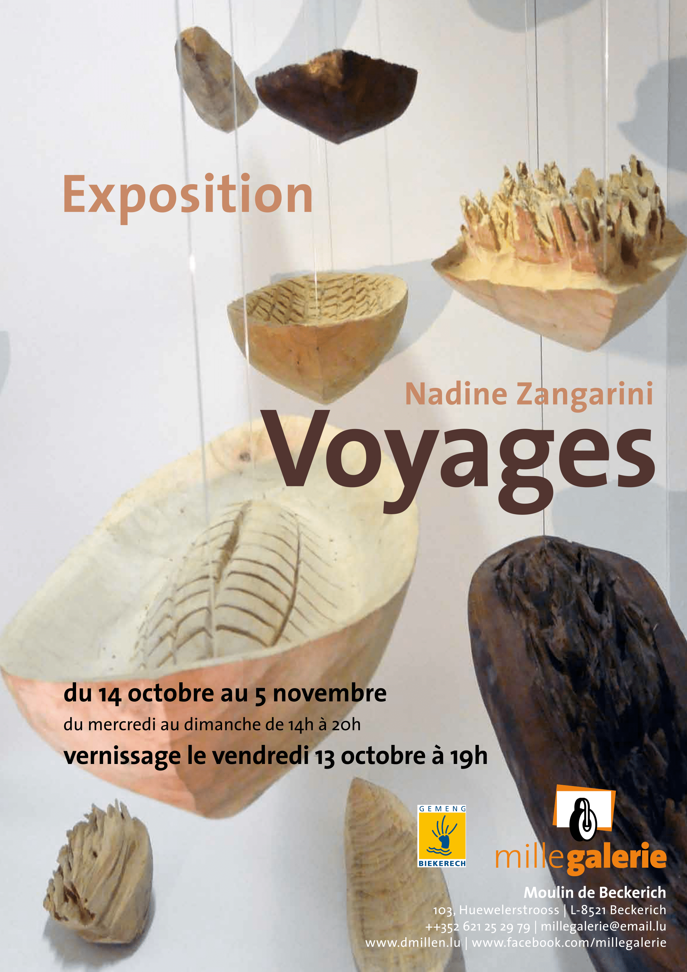 Après avoir suivi des études artistiques, nombreux stages et formations, Nadine Zangarini trouve son terrain de prédilection et d'expression dans la sculpture. Elle est inspirée par les vaisseaux évoquant l'évasion et le voyage. Les vaisseaux qui laissent aussi des images diverses comme des fonctions vitales liées au déplacement et de vie sur l'eau pour certains peuples, des aspects légers pour des voyages paradisiaques ou encore tragiques parfois avec ces voyages de migrants qui sont leur dernier espoir vers une vie meilleure.