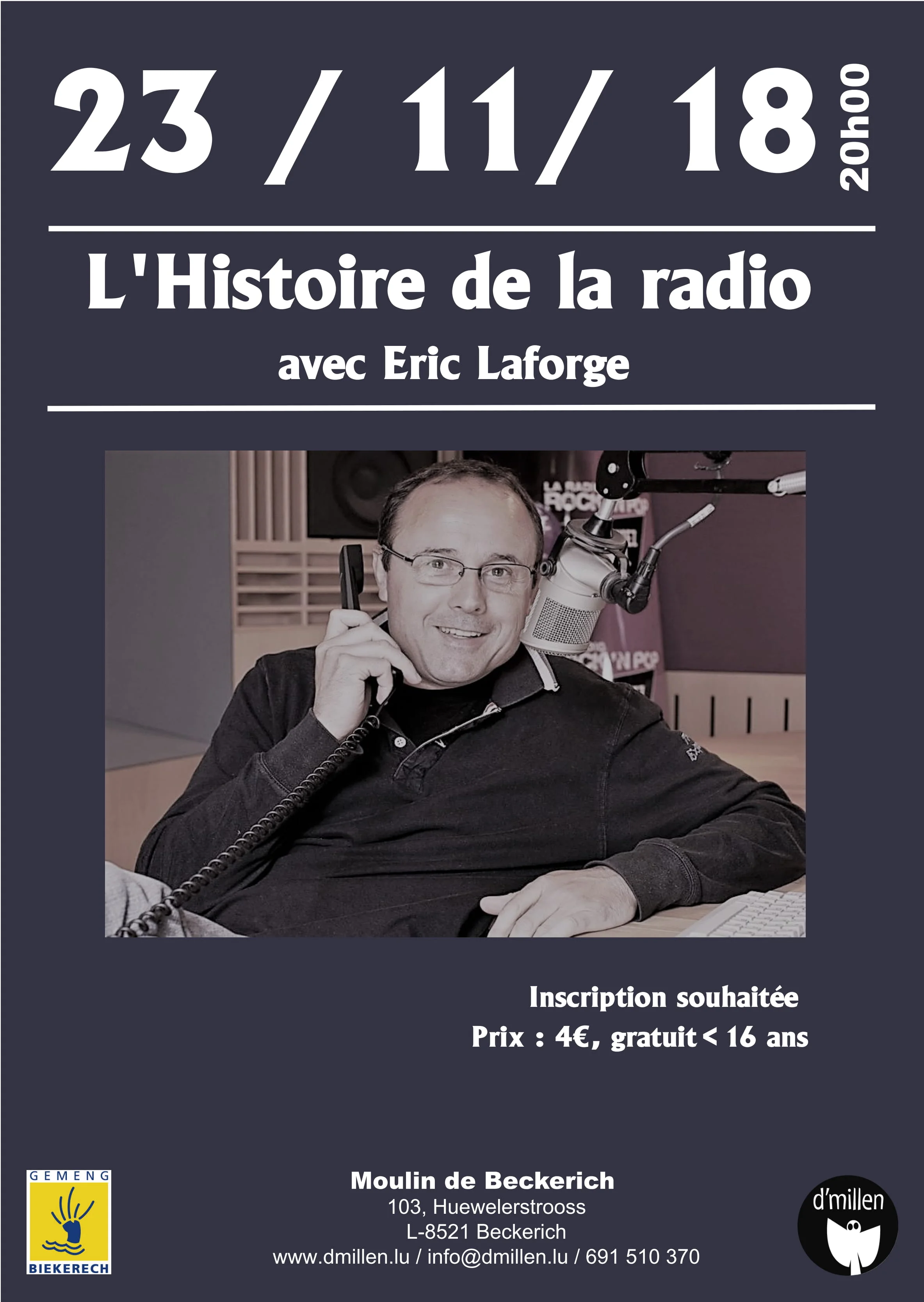 L’asbl d’Millen a le grand plaisir de le recevoir au Moulin de Beckerich pour une troisième conférence à ne manquer sous aucun prétexte !