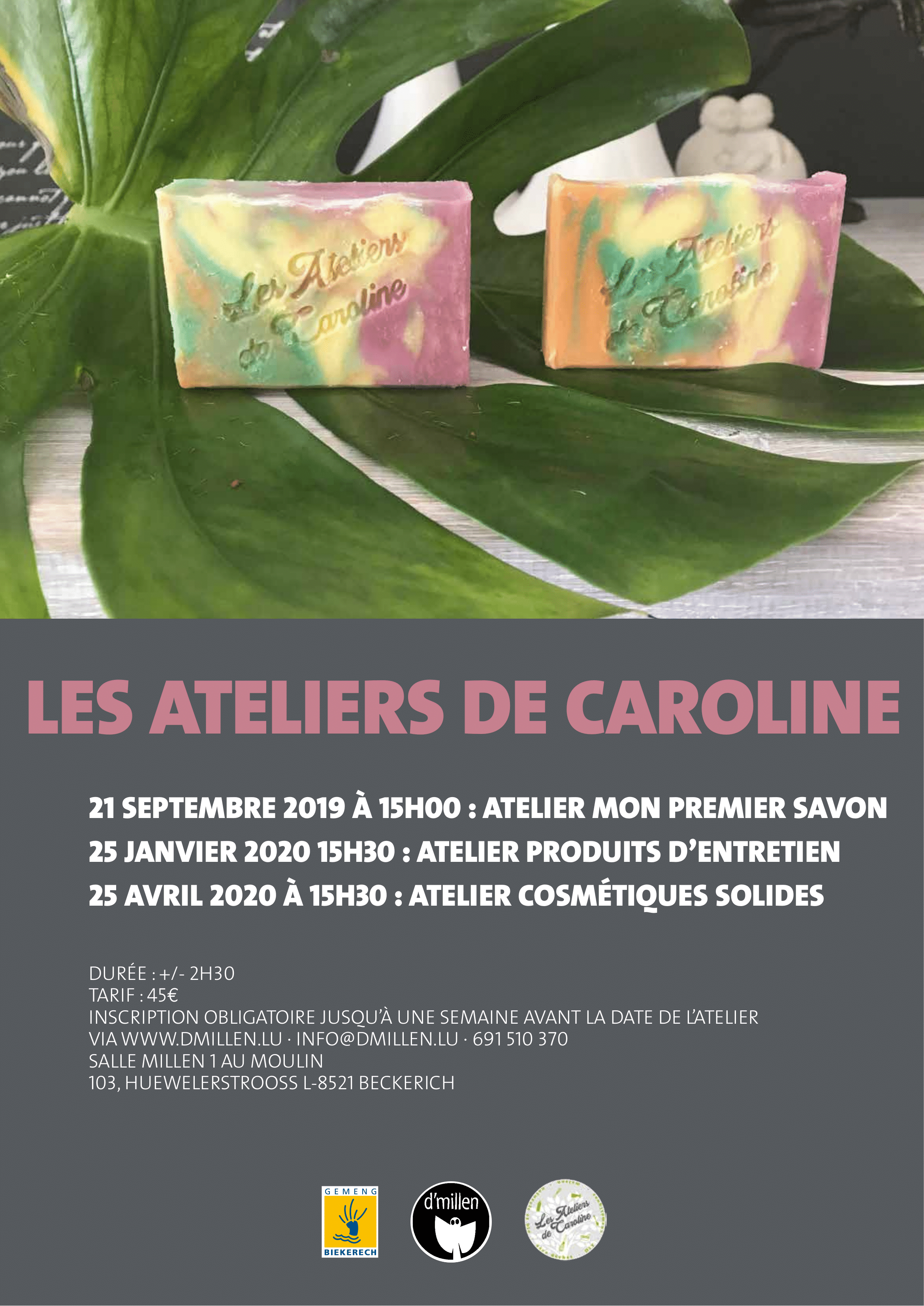 Inscription obligatoire jusqu’à une semaine avant la date de l’atelier via dmillen.lu · [email protected] · 691 510 370