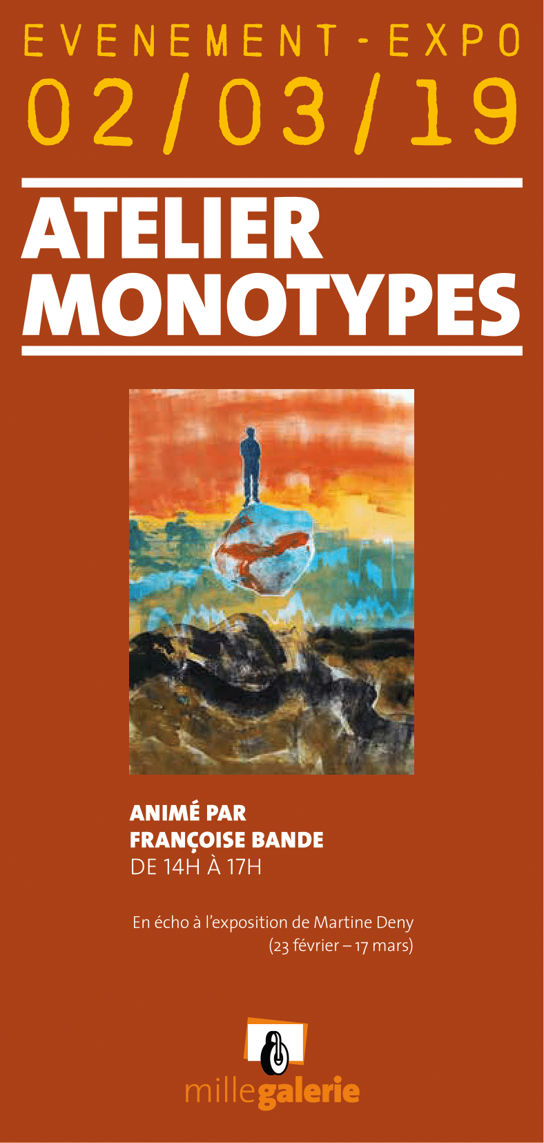 Un atelier pour découvrir le monotype, technique se situant à mi-chemin entre le dessin original et l’estampe. Le procédé à impression unique est réalisé par l’application d’encre sur une surface plane, du dessin dans l’encre, suivi de son transfert sur papier. Cette technique permet l’expérimentation et la spontanéité pour des résultats aux effets surprenants !